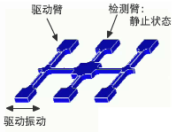 驅動臂通過相對振動,互相消除彼此的振動,所以中央的檢測臂處于靜止狀態(tài)。檢測臂處于靜止狀態(tài),因此可以正確地測試出處于沒有旋轉運動的狀態(tài)。